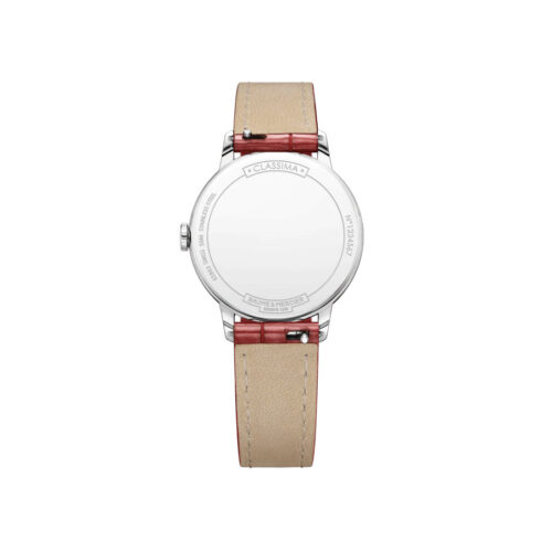 Baume & Mercier women’s watch, Classima collection with 31mm diameter case. in Steel and Red Leather strap. Water resistant up to 5 Bar.