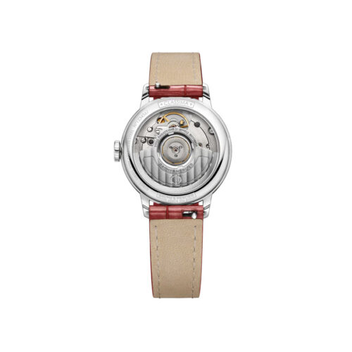 Baume & Mercier women’s watch, Classima collection with 31mm diameter case. in Steel and Red Leather strap. Water resistant up to 5 Bar.