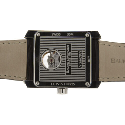 Baume & Mercier men's watch, Hampton collection with 34x45mm square case. in Steel and Leather strap. Water resistant up to 5 Bar (50 meters).