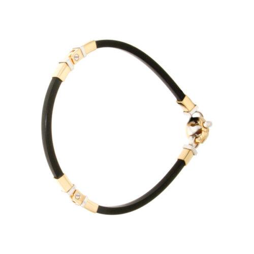 - BR20926 Model: Bracelet, Black Rubber, Yellow and White Gold 18 Kt. – closing in Gold with Diamond.
