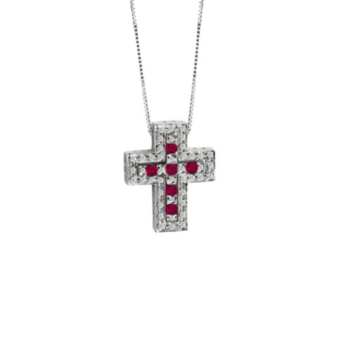 - Model 20039534: Damiani Belle Époque cross White Gold necklace with Rubies (ct.0.36) and Diamonds (ct.0.28).