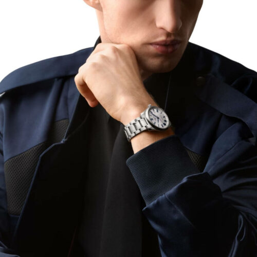 Each model’s 40mm stainless steel case wraps a refined dial, available in a variety of colors and finishes.