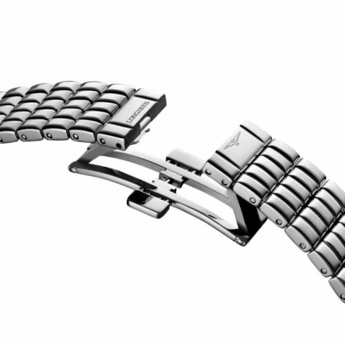 - Model L52004756: rectangular steel case 21.5x29mm, steel strap, silver dial.