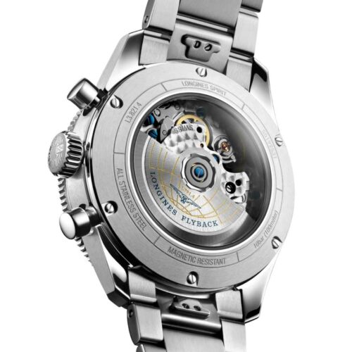Longines Spirit Flyback watch man’s, with steel strap and case and 42mm diameter. Longines Spirit Flyback watch, a reliable companion for those seeking limitless adventures and timeless style.