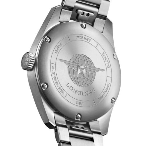 Longines Spirit Collection L3410 watch. Automatic movement. Steel case and strap, 37mm diameter. The distinctive design of this watch captures the essence of Longines’ Spirit collection, celebrating the brand’s aviation heritage.
