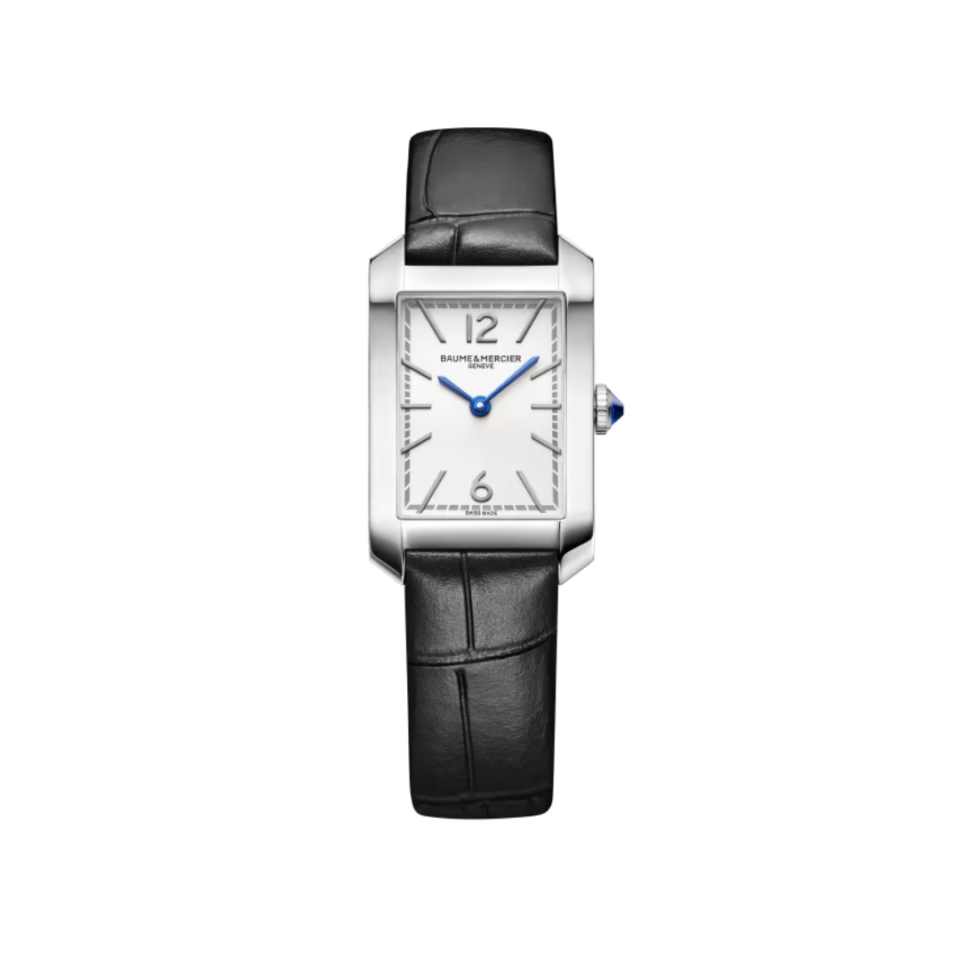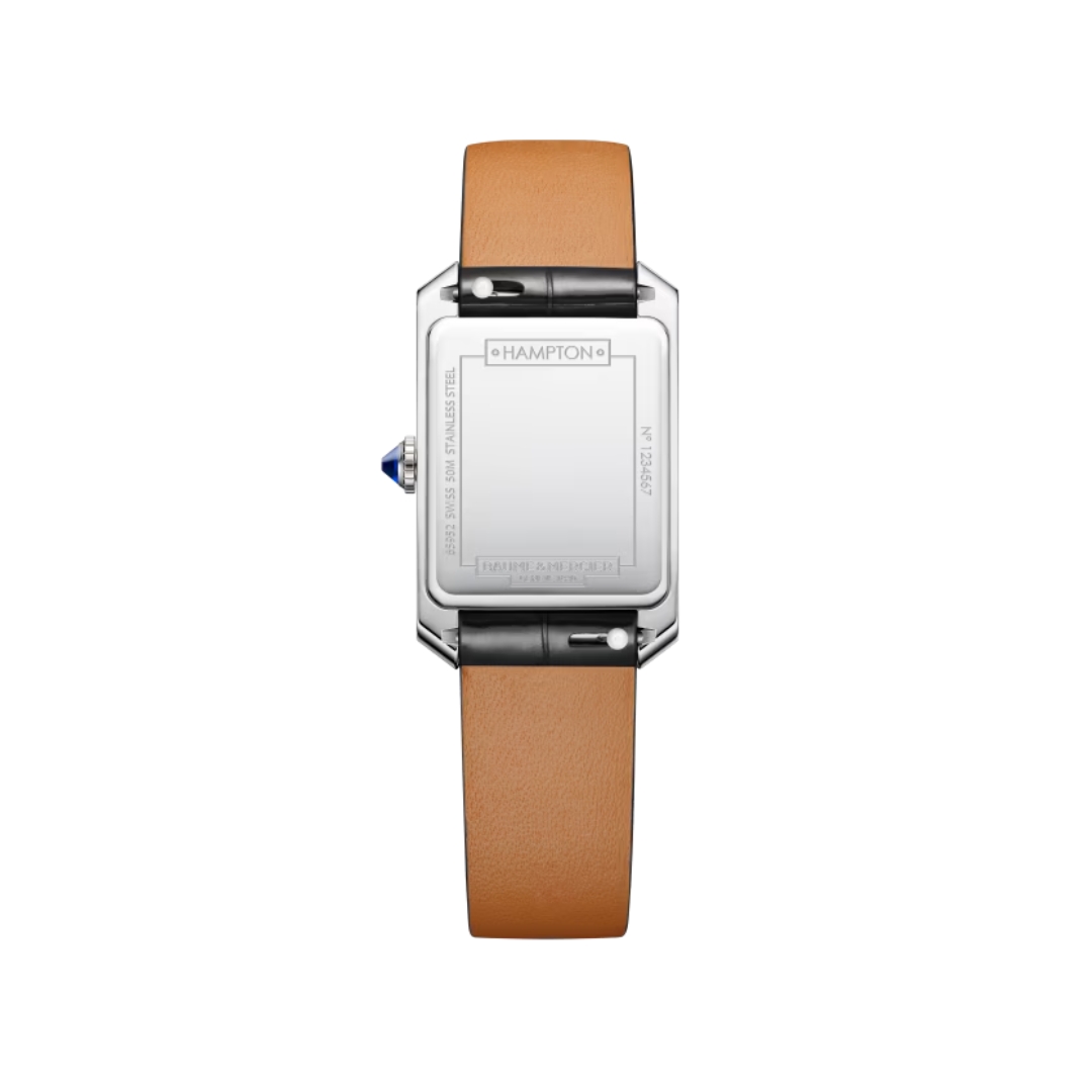 The Baume & Mercier Hampton (reference M0A10795) is a refined and understated timepiece, designed for the woman who seeks classic elegance and everyday practicality. The polished stainless steel rectangular case measures 22 × 35 mm, with a slim 6.9 mm profile — offering a comfortable and delicately balanced presence on the wrist.