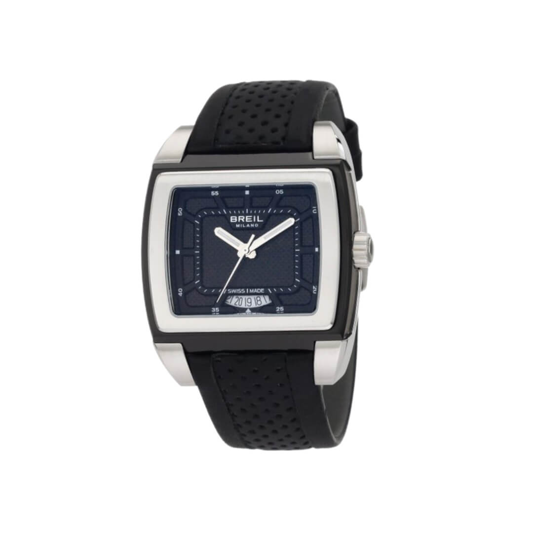 Men’s Breil watch from the Milano collection. Square stainless steel case and black leather strap. Quartz movement and black dial. Water resistant up to 100 meters.
