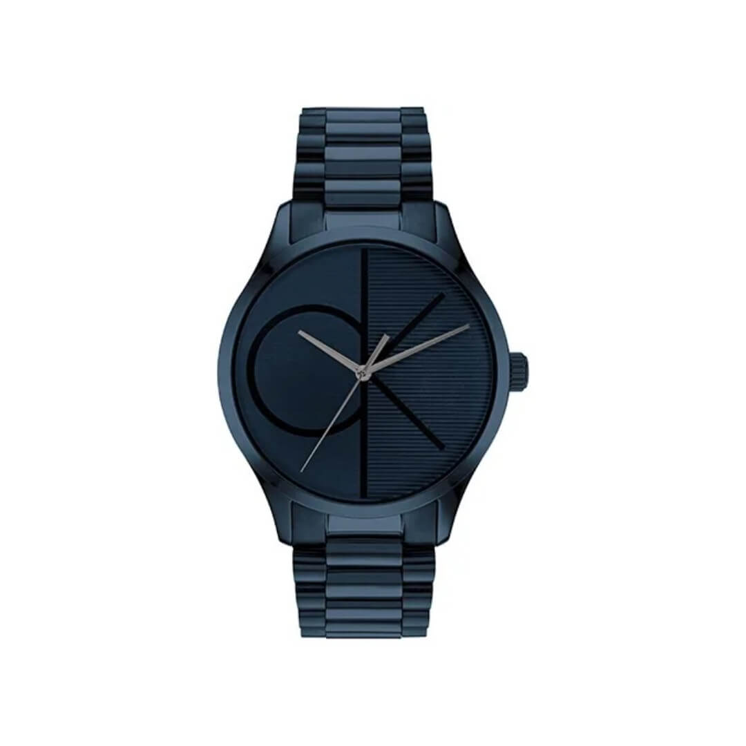 Unisex Calvin Klein watch from the Fashion collection. Dark blue PVD stainless steel case and bracelet, 40mm. Quartz movement, blue dial.