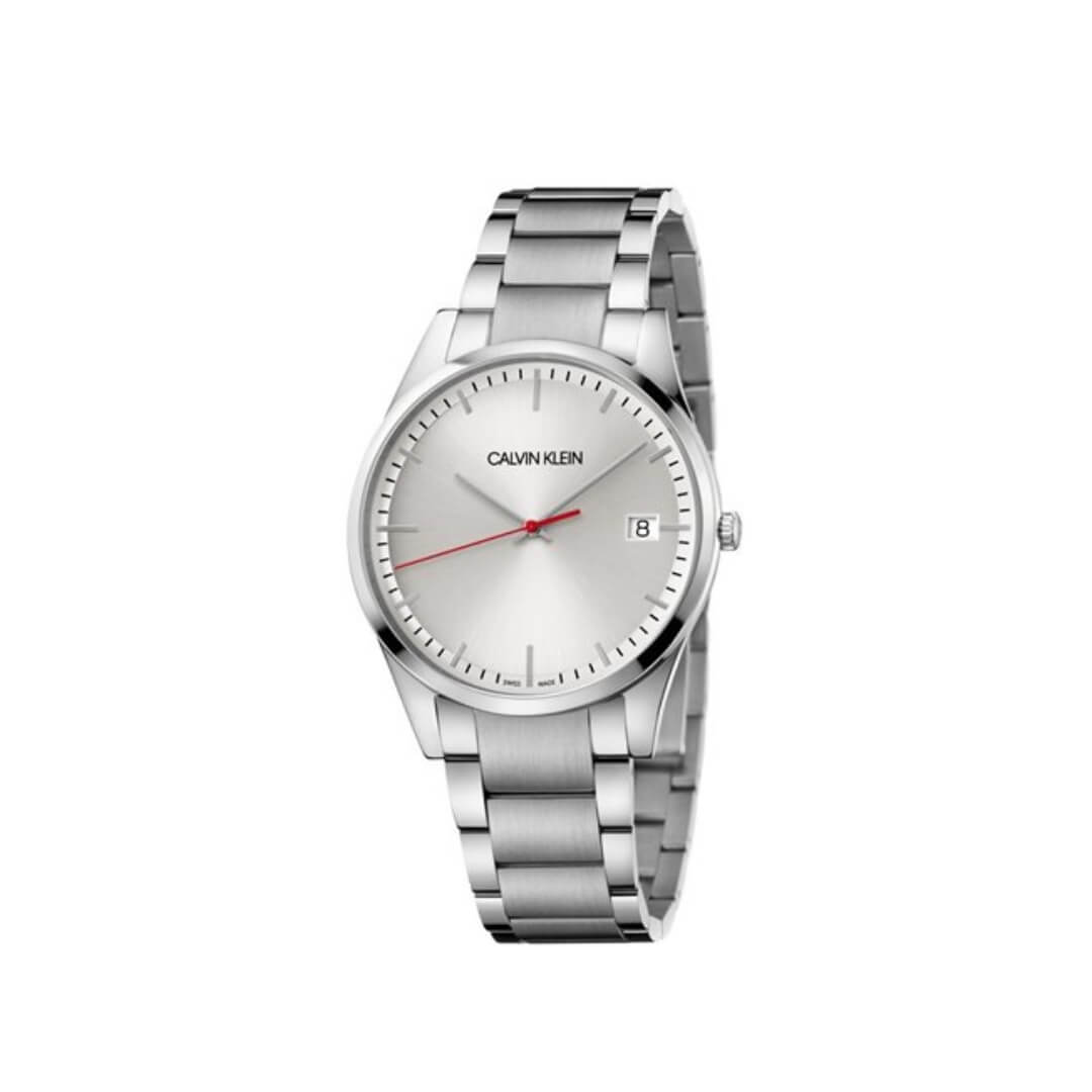 Men’s Calvin Klein watch from the Time collection. Stainless steel case and bracelet, 40mm diameter. Quartz movement and silver dial.
