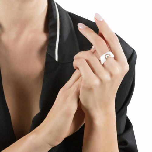 - Modello 20045781: Anello Damiani D-ICON in ceramica bianca , Oro Rosé 18kt. e Diamante carati 0.0.1 colore H 10 mm. misura 12