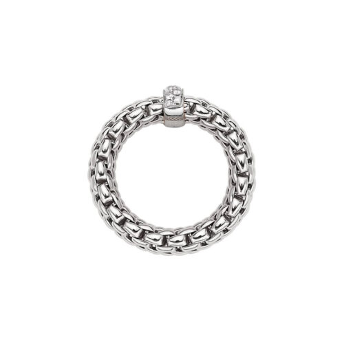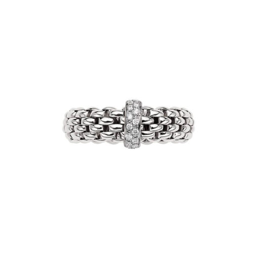 - Modello: 55902AX_BB_B_XBX_00M: Anello donna Fope Collezione Vendome FLEX-IT con maglia estensibile in oro bianco 18 kt. e diamanti ct.0.10