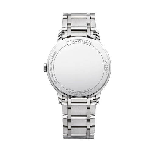 Orologio uomo (unisex) Baume Mercier, Collezione Classima, cassa di forma rotonda di diametro mm.40, cassa e cinturino in Acciaio Inox con chiusura tripla pieghevole con sicurezza, vetro Zaffiro.