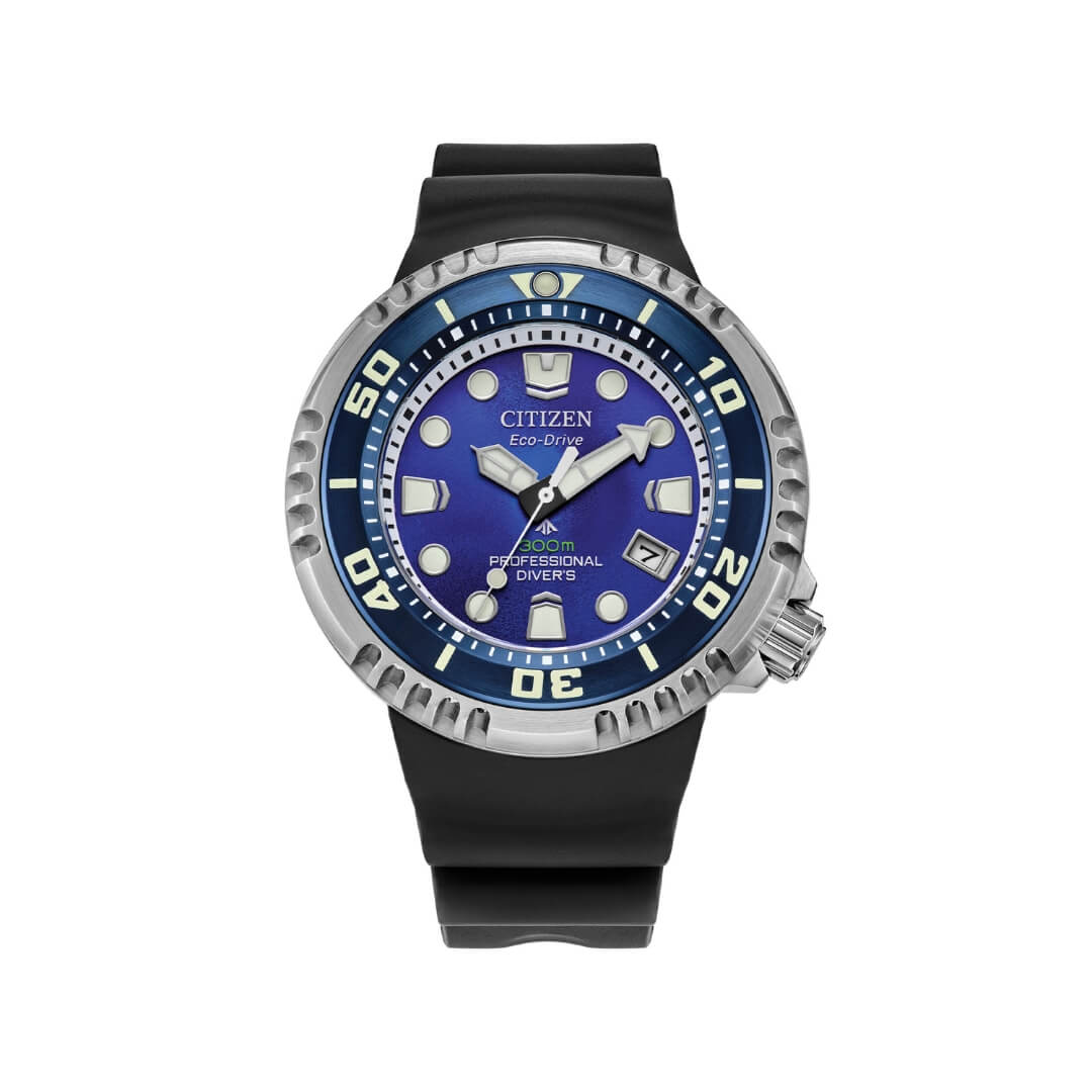 Orologio da uomo Citizen della collezione Diver’s. Cassa in acciaio da 46mm, cinturino in silicone. Movimento eco drive, resistente all’acqua fino a 300mt.