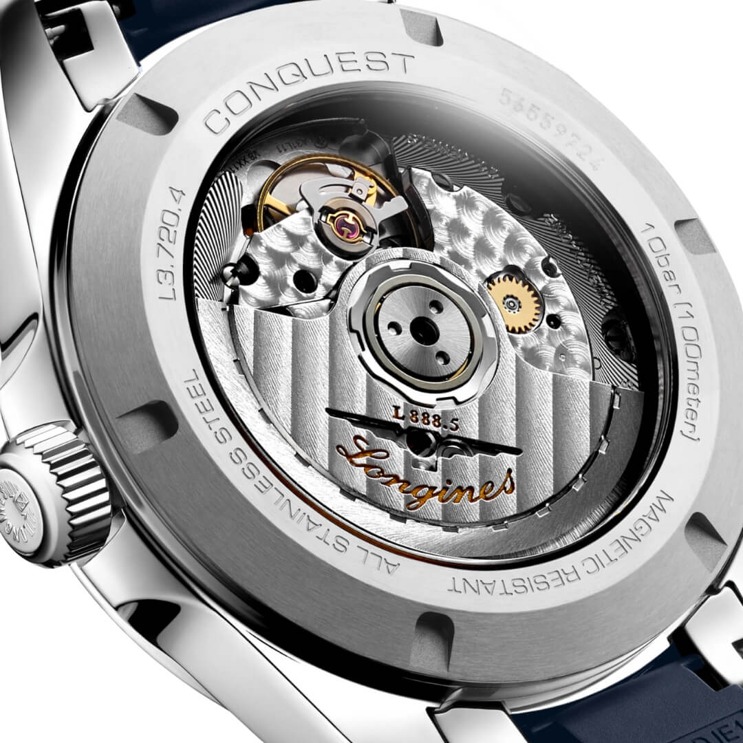 Con un’impermeabilità fino a 10 bar (100 metri), il Longines Conquest è ideale per la vita attiva, lo sport e il tempo libero. Un orologio che unisce tradizione Swiss Made, design raffinato e funzionalità moderne in un unico, straordinario segnatempo.