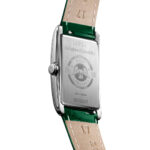 Il cuore di questo modello è il meraviglioso quadrante Argento Flinqué, una lavorazione artistica che dona profondità e luce uniche, impreziosito da numeri romani neri e lancette blu, per un contrasto elegante e sofisticato. A completare il design, il raffinato cinturino in pelle verde con fibbia ad ardiglione, un dettaglio di colore che aggiunge personalità e versatilità, rendendolo perfetto sia per il giorno che per la sera.