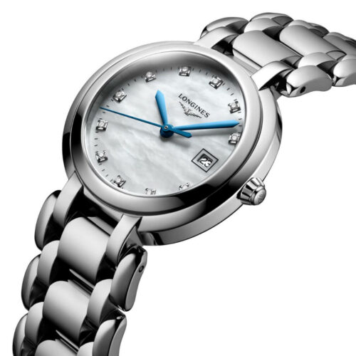 Le due versioni presentano dei quadranti differenti, uno argento con indici a numeri romani, e uno in madreperla con diamanti. Le lancette azzurre e il cinturino in acciaio inossidabile completano l’aspetto raffinato di questo orologio.