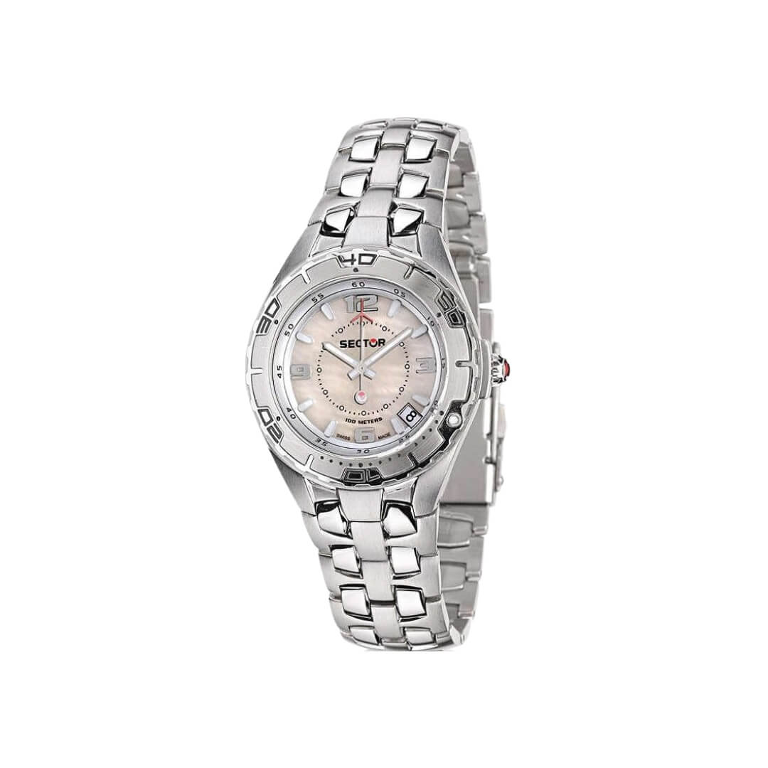 Orologio da donna Sector della collezione No Limits. Cassa e cinturino in acciaio, 37mm diametro. Movimento al quarzo e quadrante in madreperla.