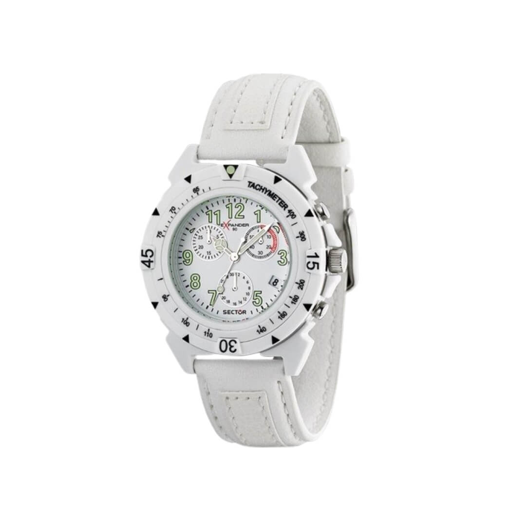 Orologio da uomo Sector della collezione No Limits. Cassa in resina da 39mm e cinturino in pelle bianca. Movimento al quarzo, quadrante bianco con cronografo.