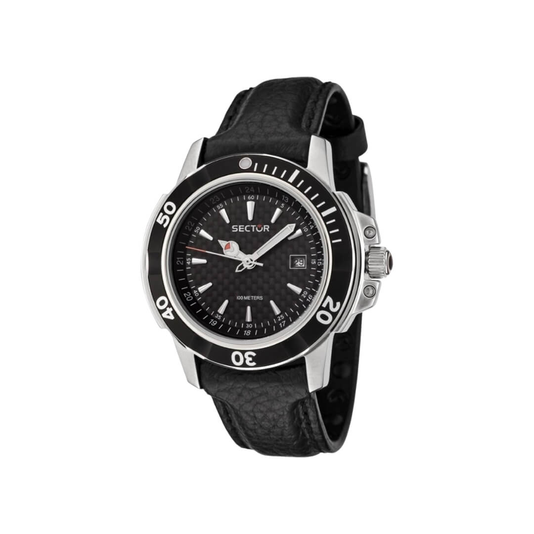 Orologio da uomo Sector No Limits. Cassa in acciaio con ghiera nera, 41 mm e cinturino in pelle nera. Movimento al quarzo e quadrante nero lavorato.