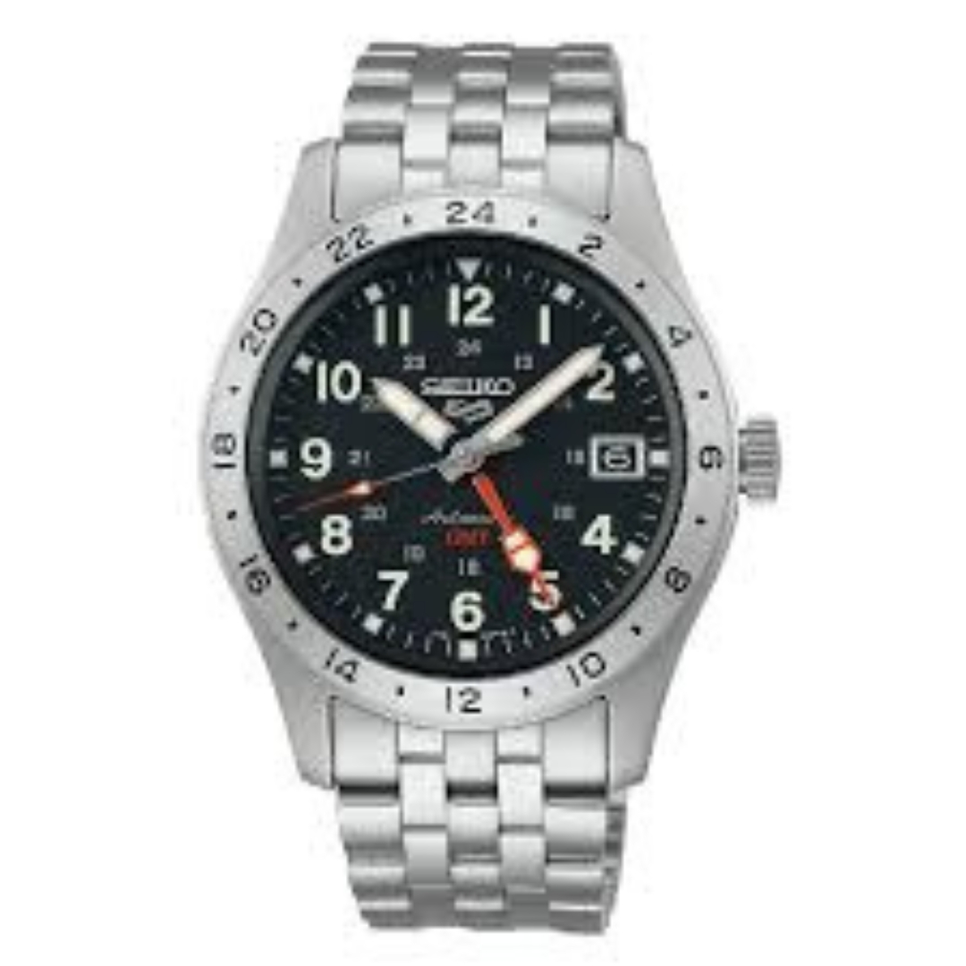 L’orologio Seiko 5 Sports è una combinazione perfetta di stile sportivo e funzionalità avanzate, realizzato per affrontare ogni sfida quotidiana. Il quadrante nero, impreziosito da indici luminescenti e lancette ben visibili, offre una lettura chiara in qualsiasi condizione di luce, rendendolo ideale per le occasioni più dinamiche. L’aggiunta della funzione GMT consente di seguire facilmente un secondo fuso orario, un elemento indispensabile per chi viaggia frequentemente o lavora a livello internazionale. La cassa in acciaio inossidabile da 39 mm garantisce resistenza e un comfort ottimale al polso, mentre la lunetta girevole, graduata per 24 ore, integra praticità e estetica.
