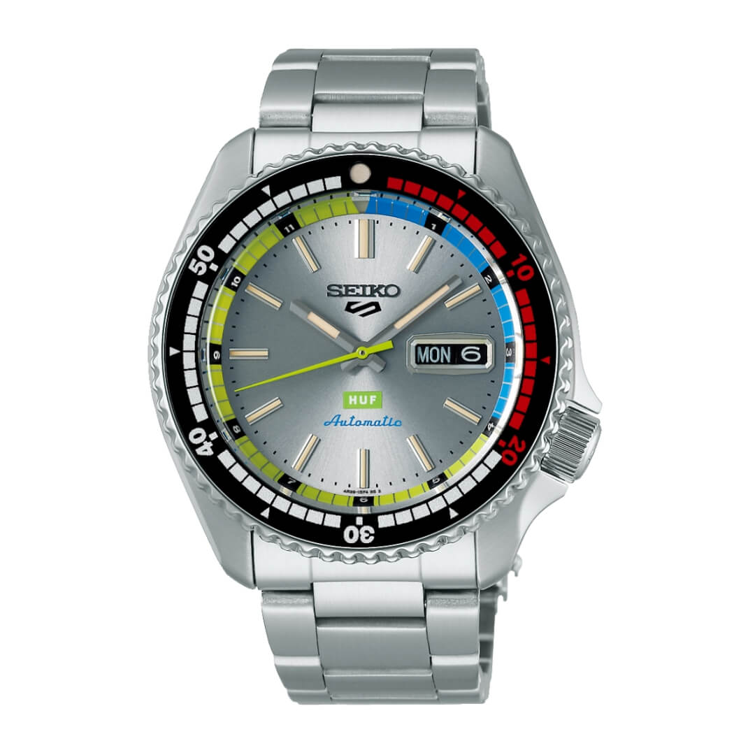 Scopri l’eccezionale Seiko 5 Sports Edizione Limitata Serie, un segnatempo che unisce la maestria orologiera giapponese a un design innovativo e audace. Il quadrante, silver sofisticato presenta una finitura opaca che ne esalta la texture e i dettagli, rendendolo un vero capolavoro visivo. Gli indici e le lancette, trattati con la tecnologia Lumibrite, offrono una luminosità intensa, garantendo una lettura chiara e precisa anche in condizioni di scarsa illuminazione. Un motivo grafico esclusivo, ispirato allo spirito urbano e creativo di HUF, decora il quadrante, conferendogli un’identità unica e distintiva, perfetta per chi ama distinguersi.