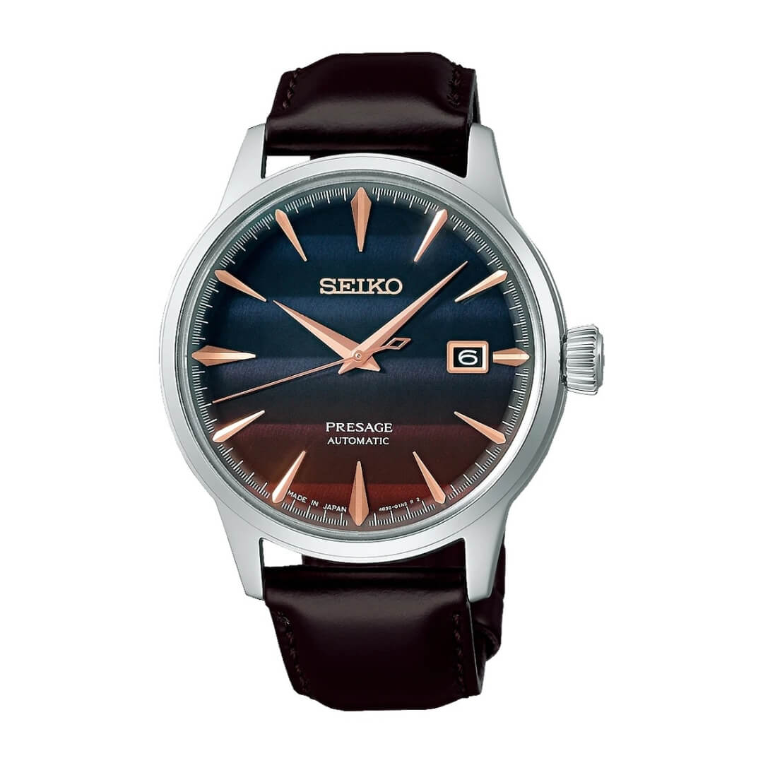 Orologio da uomo Seiko collezione Presage Cocktail Time. Edizione limitata, 9000 esemplari. Cassa in acciaio e cinturino in pelle, 40mm.